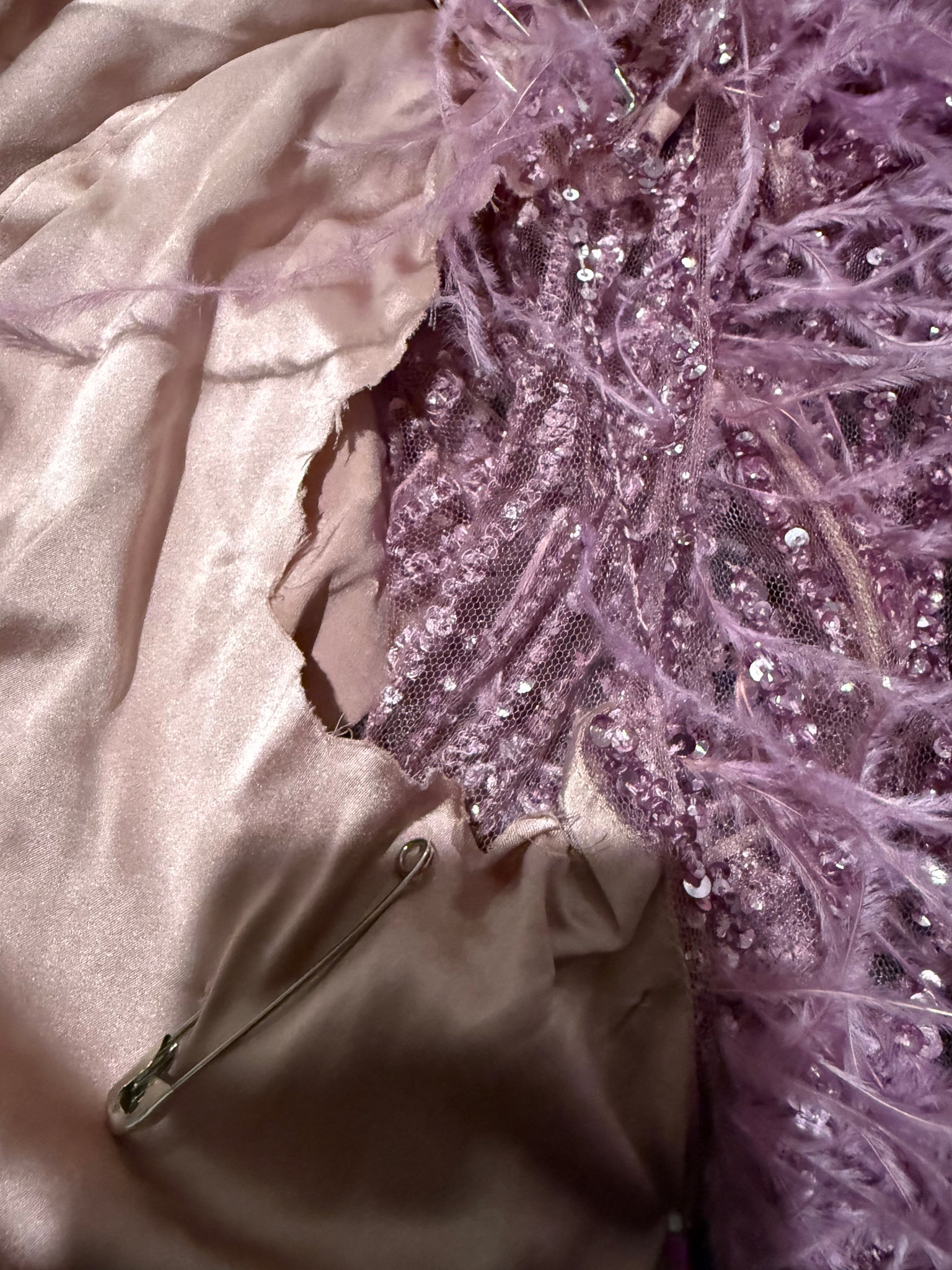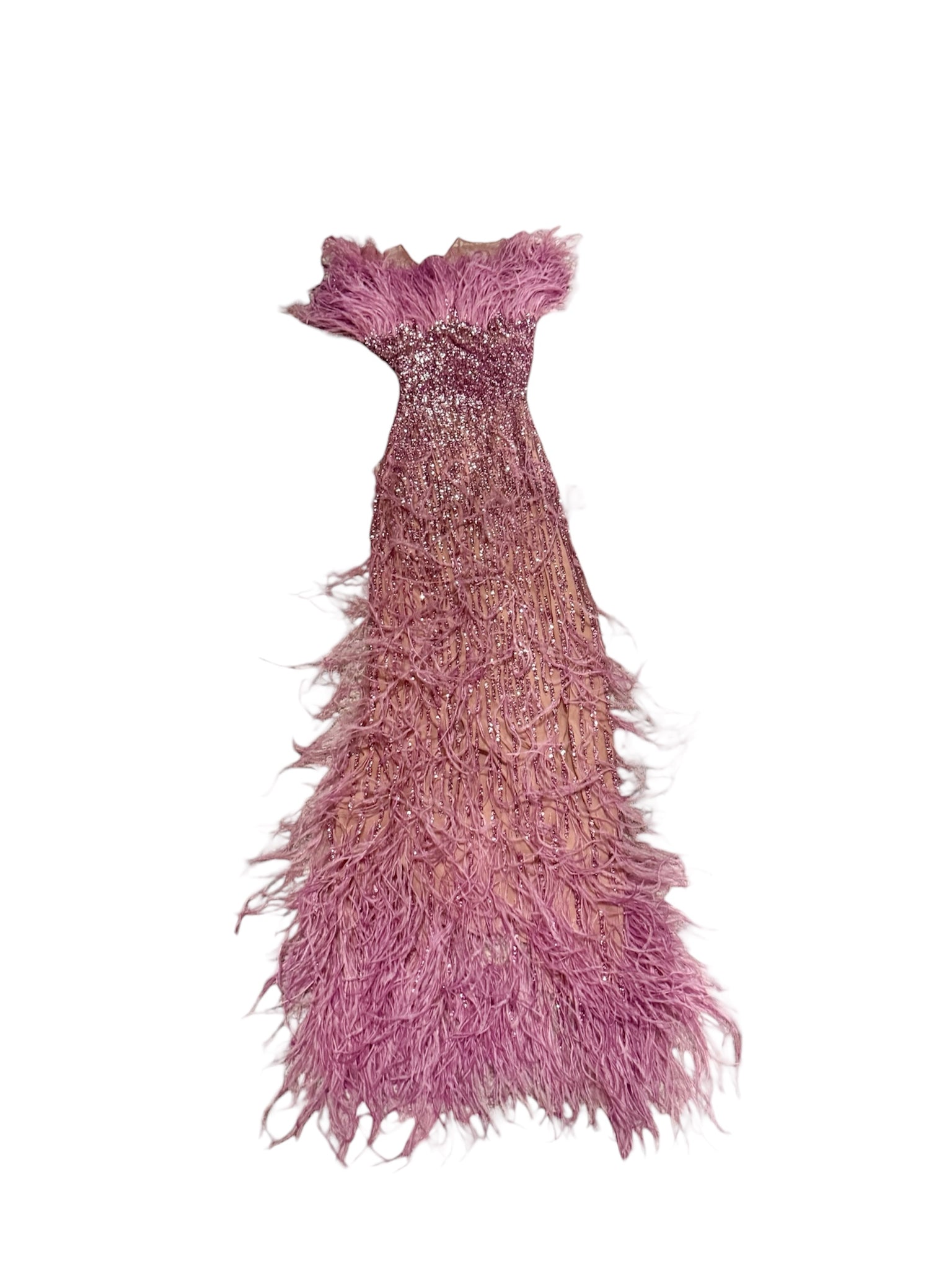 Pamella Roland Pink Feather Sequin Gown Dress Sz XS
